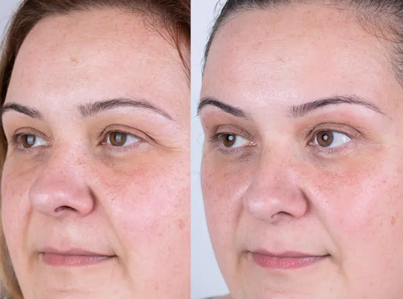 Apply a drop under the eyebrow or on the eye socket and massage by tracing a circle that covers the area of the upper and lower eyelids of the the eyes, avoiding the lacrimal gland and the mucous membranes. Remember that you can also apply it to areas where you want to achieve an instant filling and tightening effect, such as the nasolabial folds, the area between the eyebrows, or to smooth out the so-called “barcode” lines.